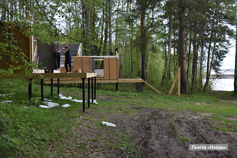 Глэмпинги строятся: в лесу на прибрежной территории ранее были смонтированы сваи. На них сейчас собираются каркасы домиков. Реконструкция «высотки» близится к завершению. Как отметил директор строительной компании «Европейский» Игорь Мокеров, номера (апартаменты) оснащают мебелью и бытовой техникой. Заканчивают мелкие чистовые работы. Завершают работы на ресторане, в который уже заказано оборудование и обсуждается запуск с шеф-поваром. Техническое открытие «высотки» намечено на 1 июля.