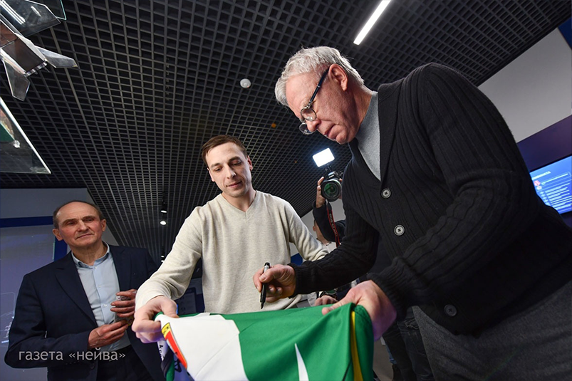 Подписал несчитанное количество шайб. Подарил клюшку хоккейной команде УЭХК с надписью «Хоккеистам УЭХК: удачи и побед! Ваш Фетисов».