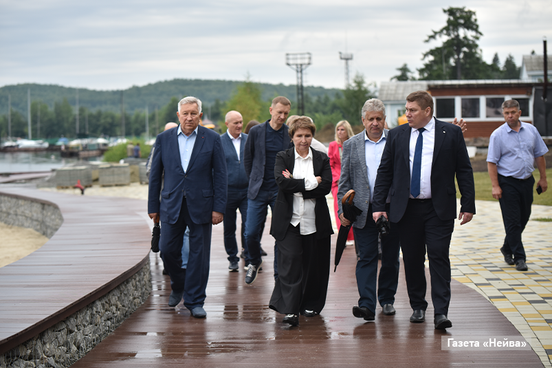 Темп работ на пляже также радует. Тут начали укладывать рулонные газоны, строится сцена возле кафе. Глава НГО Вячеслав Тюменцев обратил внимание гостьи на площадку для инвалидных колясок со спуском к воде. Кстати, в общественном туалете также будет предусмотрено помещение для людей с ограниченными возможностями здоровья.