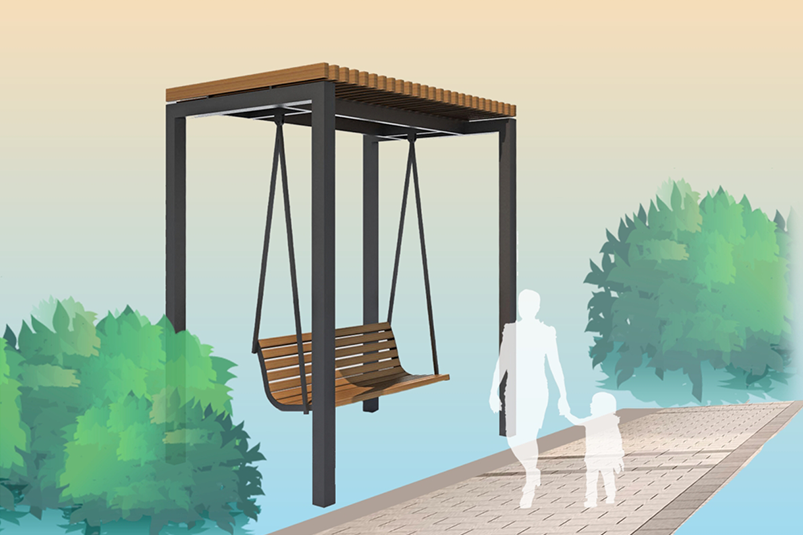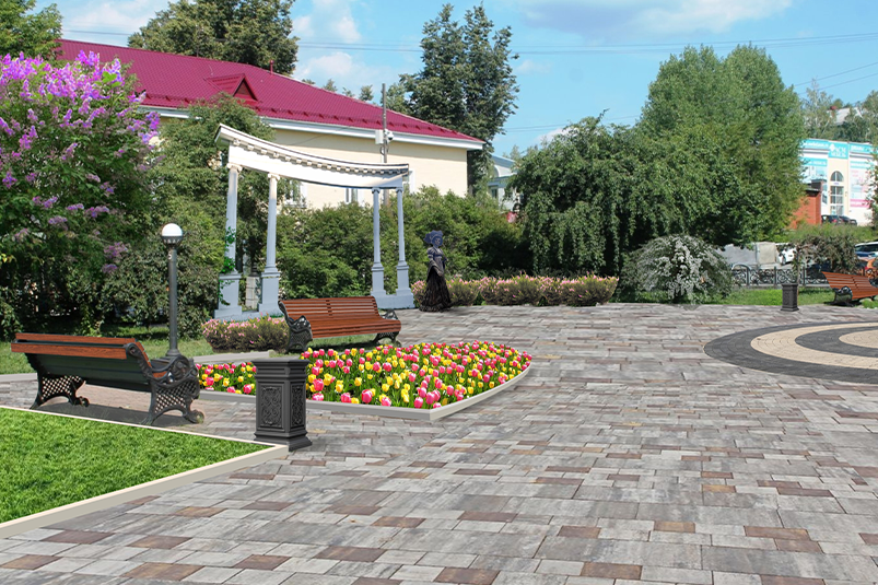 На аллее Рабочей молодежи планируется заменить покрытие пешеходной зоны на тротуарную плитку, высадить кустарники, установить скамейки и качели.