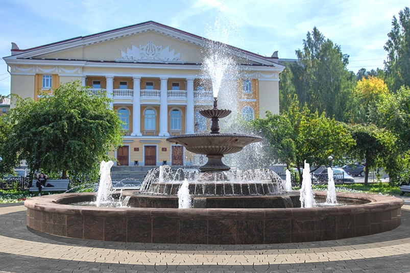 Обновление территории сквера у Театра музыки, драмы и комедии подразумевает небольшую реконструкцию технической части фонтана, устройство площадки для проведения мероприятий и декоративной колоннады, замену асфальта на тротуарную плитку и установку жанровых скульптур.