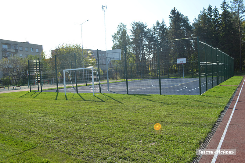 На стадионе гимназии все почти готово к приемке. Осталось уложить рулонный газон и привести в нормативное состояние спортивное оборудование.