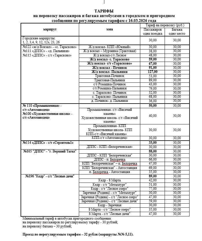 Проезд по нерегулируемым тарифам — 32 рубля (маршруты № 5, 11).