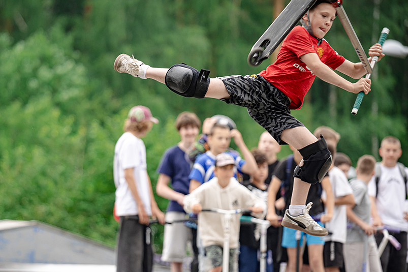 Опытные ребята-самокатчики Антон Голованов, Влад Мони и Лев Кузякин (парень специально приехал из Екатеринбурга!), BMX-ры Павел Амосов и Евгений Опанасенко и скейтеры Данил Шишов и Евгений Каранов продемонстрировали свои спортивные навыки, а затем давали советы желающим начинающим скейтерам, самокатчикам и велосипедистам.