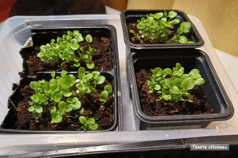 Можно смешать семена кресс-салата и рукколы и посеять в один горшок. Если выращивать как микрозелень — появляются листочки и можно срезать, но для такого способа выращивания необходимо больше семян.