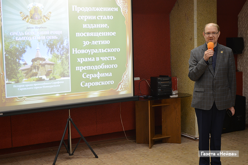 О самой книге, вышедшей при грантовой поддержке УЭХК, рассказал ее издатель Илья Чумаков (она, кстати, является продолжением целой серии книг об уральских храмах). Об истории православия в Новоуральске поведали настоятель церкви святого Николая Чудотворца села Быньги протоиерей Виктор Зырянов, который бывал у нас с беседами о православии еще в 80-х годах, директор Детской художественной школы Вера Лазаренко, руководившая церковно-приходской школой при храме, редактор телеканала «Эхо-ТВ» Ольга Кишкина, создававшая православную программу на местном телевидении, и другие гости.