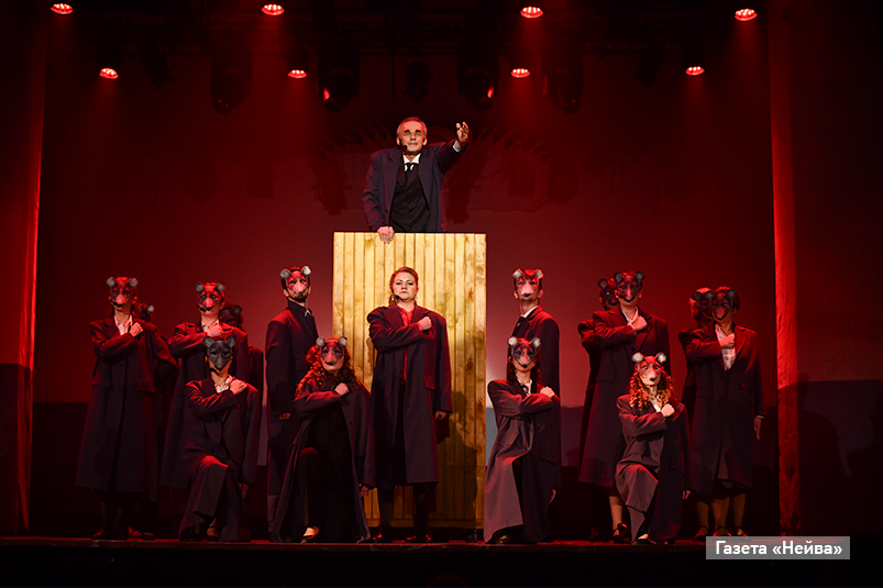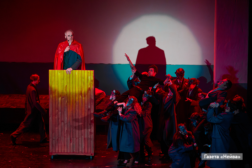 Абсурд по-советски в ТМДК представил удивительный человек — режиссер Дмитрий Отяковский. Если интересно, почитайте в интернете про него: молодой парень уже отметился и как солист, и как постановщик во множестве федерального уровня проектах, начиная с работы в знаменитом Мариинском театре! Ему помогли балетмейстер Алиса Лишенко, художник Наталья Дружкова и наш дирижер Иван Моисеев (так он сам рокер, автор постановки «Симфонические рок-хиты»!).