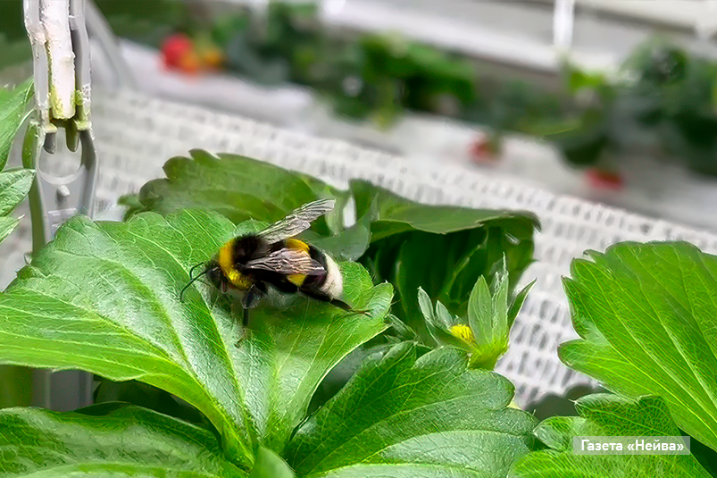 Первыми на ферме гостей встречают маленькие, но трудолюбивые шмели. «Они здесь главные специалисты», — улыбаясь, рассказывает Виктория. Земляные шмели, или по науке Bombus Terrestris, являются идеальными опылителями сельскохозяйственных культур. Они отличаются от других видов более крупным размером и длинным хоботком.