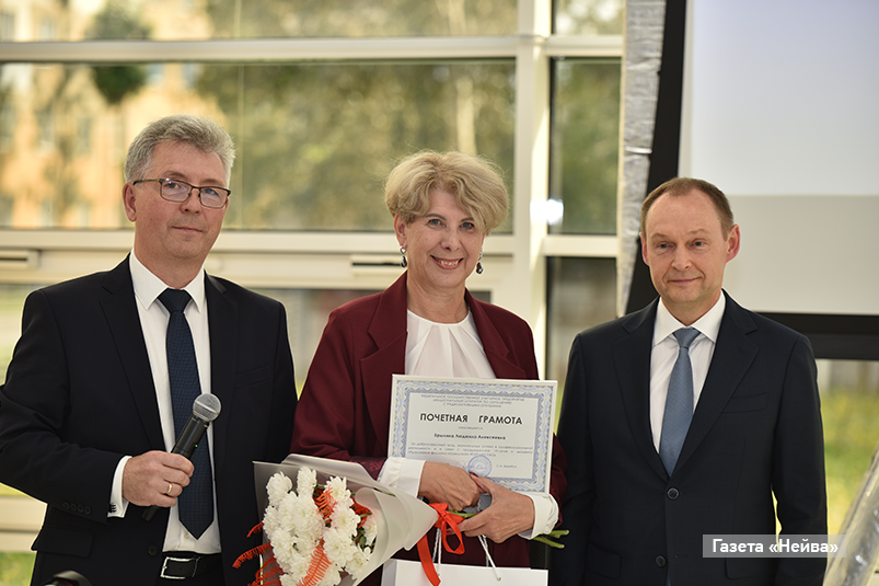 На протяжении всего торжества лучшим работникам вручались заслуженные награды. Благодарственным письмом Законодательного Собрания Свердловской области награждена Наталья Насобина, специалист по учету и контролю РВ и РАО.