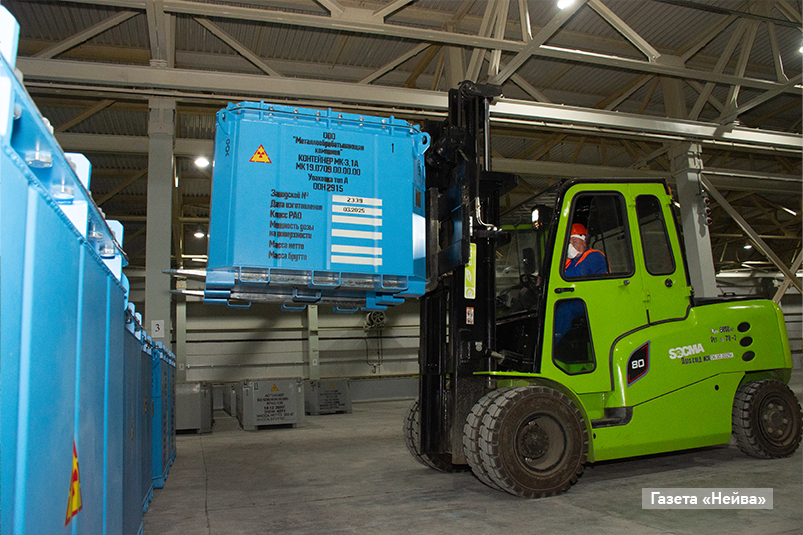 Впрочем, мы забегаем вперед. В ходе экотура журналистам показали и участок промежуточного хранения контейнеров с РАО. Как рассказал начальник участка Сергей Красильников, комбинат закупает только сертифицированные контейнеры двух типов: стальные — для насыпных РАО 4 класса опасности и бетонные — для отходов 3 класса. Причем каждый заполненный контейнер тянет на 5-6 тонн!