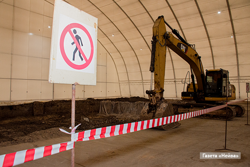 «Каркасно-тентовый ангар — это разработка российских специалистов, — уточняет Юрий Скосырский. — Металлические арки с двойным слоем полихлорвинила крепятся на т-образные опоры. Под этим ангаром, без влияния на окружающую среду, и проводились все работы».