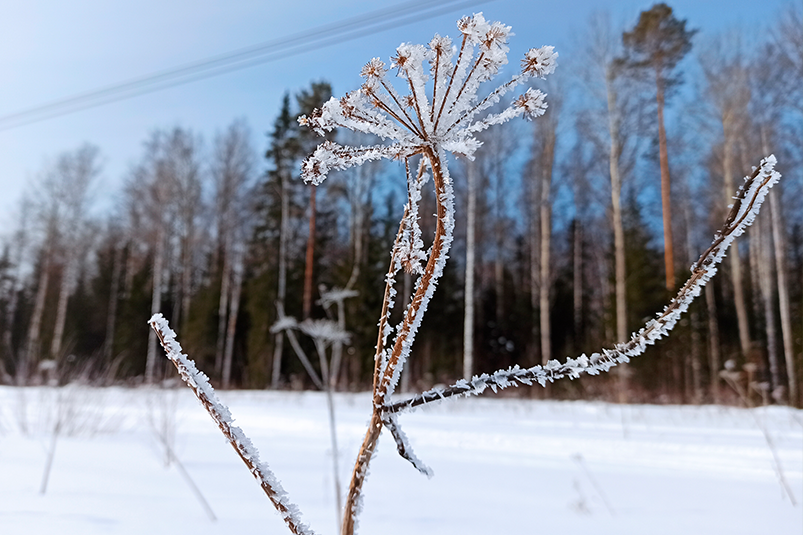 Оставили мы машины на окраине Половинного и двинулись в путь по чьей-то одинокой лыжне. Это было довольно сложным испытанием, ведь лыжня только для лыжников, а для пеших туристов — топтание по сугробам. Хорошо, что у нас у всех была высокая походная защитная обувь.