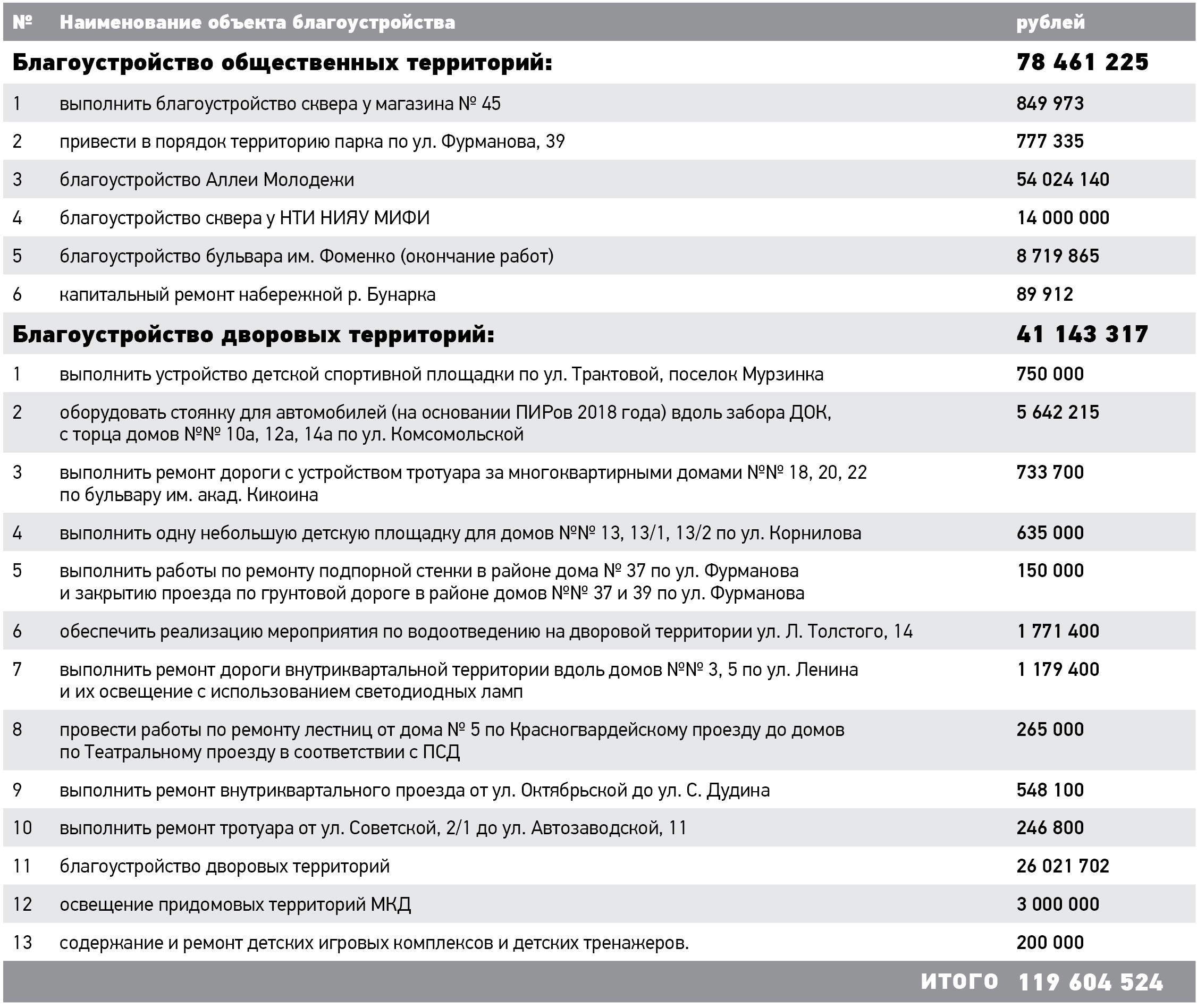 На все объекты благоустройства в 2019 году предусмотрена беспрецедентная сумма — почти 120 млн рублей. Чтобы успеть справиться со столь масштабной задачей, аукционы по выбору подрядчиков решено провести весной с тем расчетом, чтобы работы на объектах начать уже в мае.