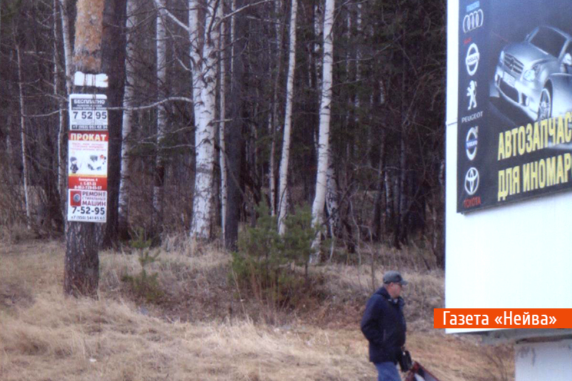 Читателя «Нейвы» Владимира Беляева до глубины души возмущает то, что «свои баннеры они уже размещают прямо на деревьях, а то и на автомобилях.