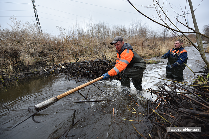 У сотрудников ДКС и бобров отношения особенные. Каждый год они создают друг другу работу. Бобры строят плотины — ДКС эти плотины ломает. А для чего, пришлось выяснять на месте в резиновых сапогах. Разумеется, бобрам вопросы задать не вышло. Спрятались они где-то.
