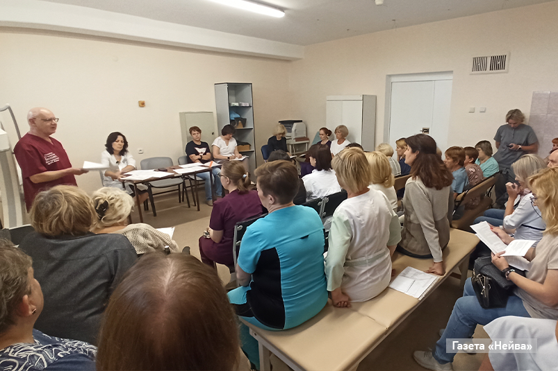 В ходе встречи были также вопросы от сотрудников подразделения эндоскопии по отсутствию свежей спецоценки условий труда и связанной с этим зарплатой. От туберкулёзного отделения — по социальным выплатам. От рентген-лаборантов — об уравнивании их труда с работой медсестры по диетпитанию. От медсестёр реанимации — об уравнивании их работы с работой медсестры-массажистки. Говорили также о необходимости различия выплат за совмещение по вакантным ставкам и ставкам ушедших в отпуск или болеющих коллег.