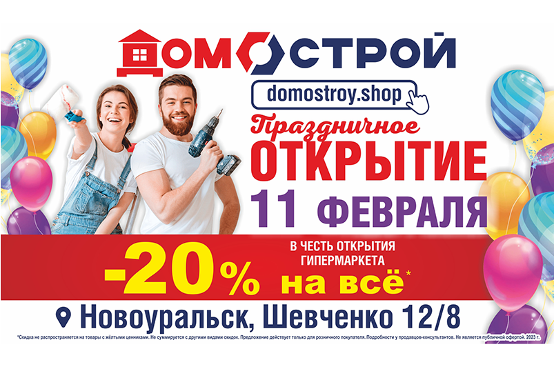 Не пропустите! 11 февраля — торжественное открытие нового магазина строительных материалов и товаров для дома «Домострой»!