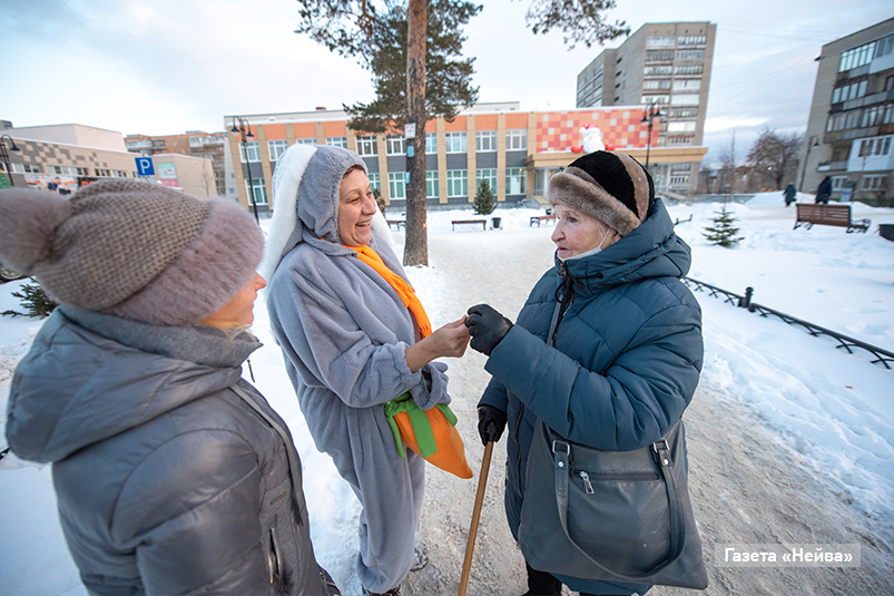 Грустных, веселых — мы поздравляли всех, ведь каждый взрослый нуждается в маленьком чуде и большом счастье. «Ой, не надо меня фоткать, я сегодня некрасивая...» «А Бог не создавал некрасивых людей, все прекрасны и все особенные!» Вот как после таких слов Кролика Ирины не улыбнуться?! В результате около ёлки напротив ТЦ «Елена» образовалась стихийная тусовка веселых новоуральцев.