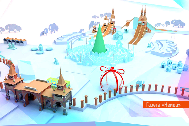 Тема ледового городка – «Народное творчество». Проект пока еще проходит утверждение. Сейчас в нем запланировано 29 новогодних элементов, из них 5 горок и 5 игровых комплексов со скалодромом.