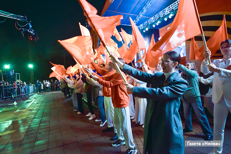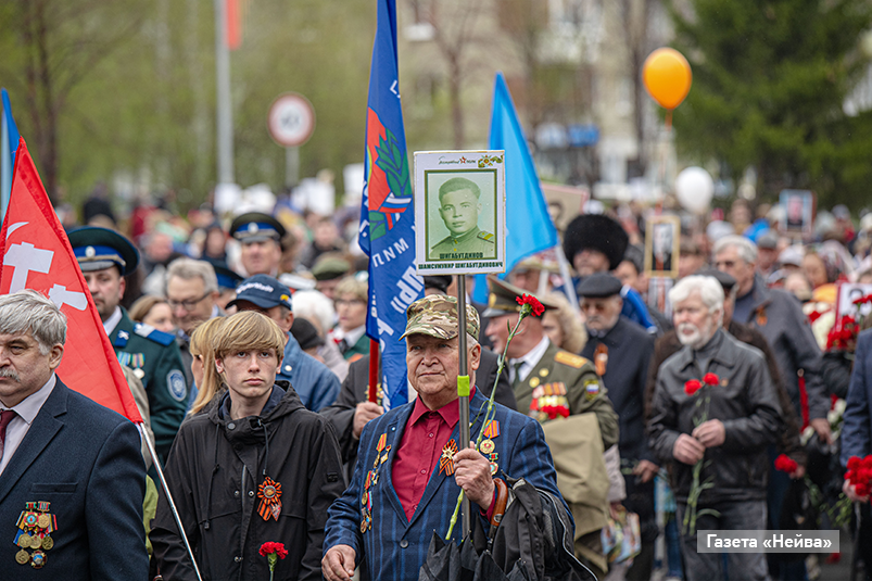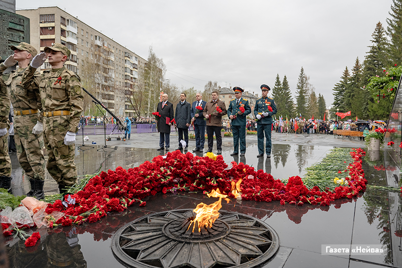 Однако сильная непогода не помешала горожанам возложить цветы у мемориального комплекса «Вечный огонь». Дружными колоннами прошли сотрудники городских организаций вместе с семьями, неся в руках флаги и фото своих родных — участников Великой Отечественной. Минутой молчания почтили память павших героев.