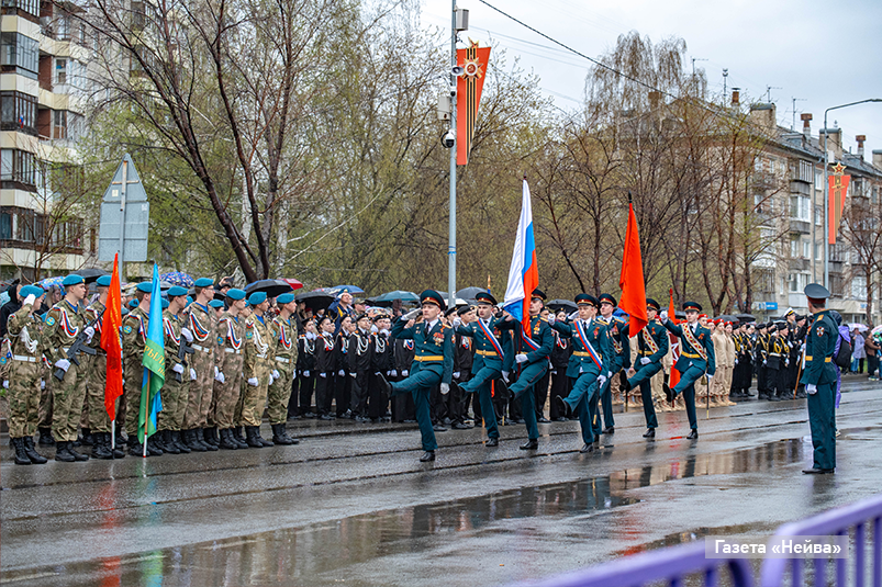 День празднования 80-летия Победы в Новоуральске прошёл под проливным дождём и с холодным ветром.