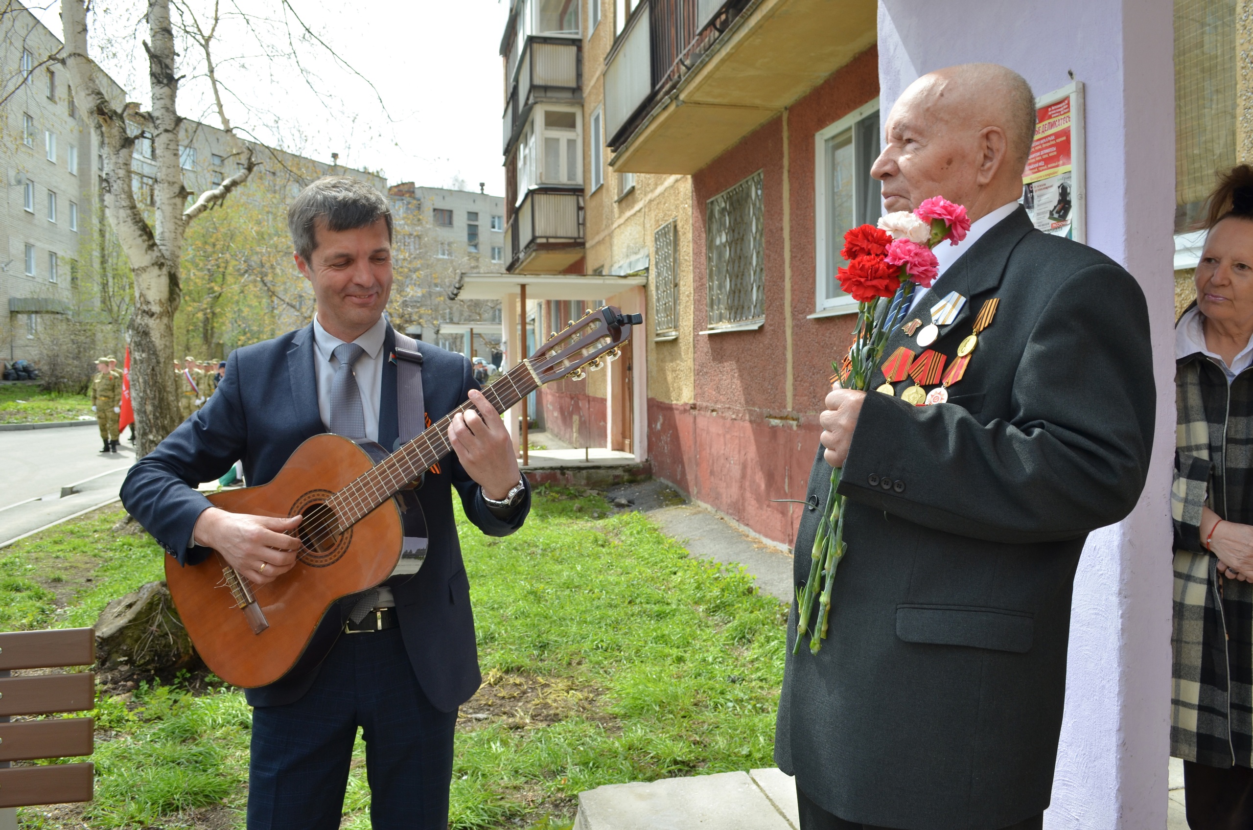 Во дворах участников Великой Отечественной войны — Федора Петровича Поплавского и Михаила Степановича Перетрухина — произведения «День Победы» и «Прощание славянки» исполнили муниципальный духовой оркестр и оркестр войсковой части 3280.