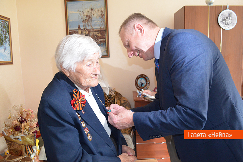 Глава НГО вручил ветерану ВОВ Лидии Ханжиной медаль «75 лет освобождения Беларуси от немецко-фашистских захватчиков».