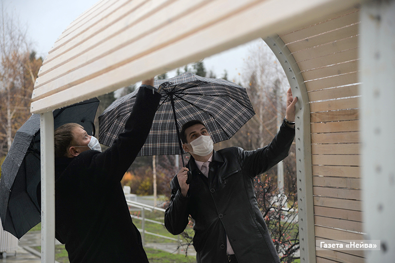 В частности, Сергей Баталов пояснил, что строительно-монтажные работы еще не закончены. Поэтому ни беседки, ни прочее ещё не принято у подрядчика — «Рукора». Приёмка должна состояться не позднее 22 октября. Что касается вопросов, возникших в том числе у подписчиков «Нейвы» по поводу беседок, то здесь ситуация следующая.