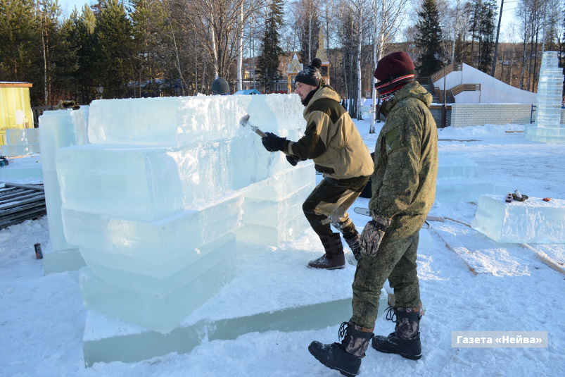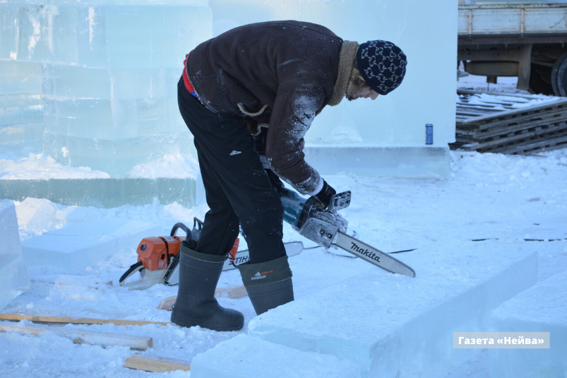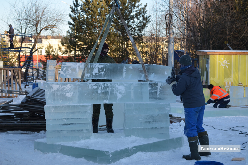 Практически завершено строительство горок, стыковка ледяных плит — то есть уже через пару дней с ними начнут работать художники. За две недели им предстоит вырезать фигуры (напомним, что в этом году темой городка станут приключения Алисы в Стране чудес). При необходимости штат художников может быть увеличен, так что их работа будет завершена к 20 декабря.