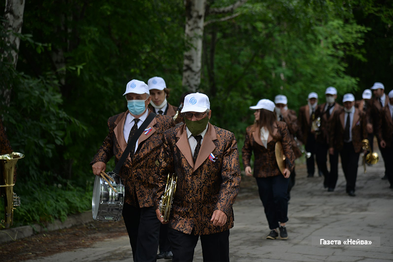 Его исполняли музыканты оркестра в/ч 3280 и Муниципального духового оркестра, пели с балконов солисты ДК «Новоуральский» и педагоги Детской школы искусств.