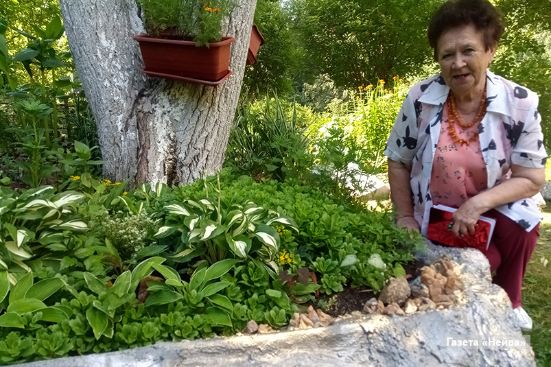 Великую энтузиастку мы встретили по ул. Комарова, 4: трудами Галины Николаевой созданы цветочные плантации, альпийские горки и чудо-композиция «Седой Урал». Презентуя комиссии свой «самый цветущий двор», Галина Алексеевна читала стихи поэта Салавата Юлаева!