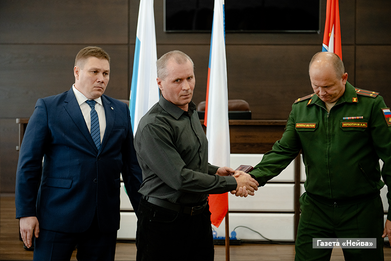 Награды вручили глава НГО Вячеслав Тюменцев, военный комиссар Новоуральска подполковник Алексей Верхотуров, заместитель председателя Думы Александр Волков, председатель правления местной общественной организации «Союз ветеранов боевых действий» Виталий Латушко.