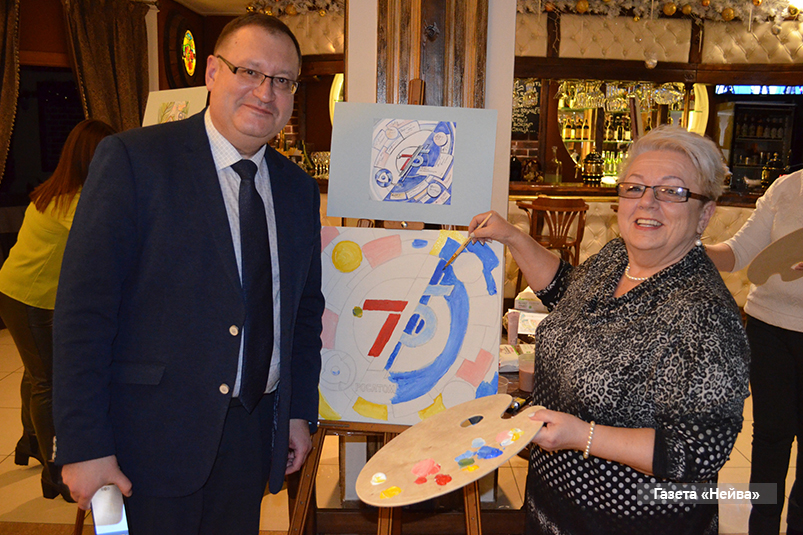 Состоялось праздничное мероприятие приемной Общественного совета Росатома, посвященное открытию юбилейного года атомной отрасли. Ее 75-летие мы будем отмечать в течение всех 12 месяцев, а в январе гости праздника – представители администрации НГО, общественных организаций, АО «УЭХК», местных СМИ – проявляли свои творческие способности в рамках корпоративного праздника с играми и интеллектуальными конкурсами. Это именно то, что именуется сегодня модным словом «тимбилдинг». Собравшиеся отвечали на вопросы викторины, касающиеся истории атомной отрасли России, а также участвовали в создании картин, посвященных ее юбилею. В этом им помогали педагоги Детской художественной школы, так что в итоге получились действительно неплохие работы. По словам организаторов, в скором времени их передадут в дар Госкорпорации «Росатом» в Москву.