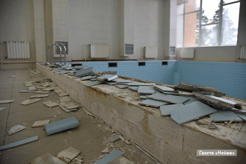 В мужском отделении, по данным «Нейвы» на вторую половину прошлой недели, ситуация следующая. За первые пару дней работы строители отбили всю плитку в раздевалке, перешли с отбивкой в моечную. Начали снимать обшивку в парилках. Приступили к демонтажу плитки в бассейне. Параллельно, в рамках гарантийных обязательств, разберутся с протечкой на потолке бассейна женского отделения.