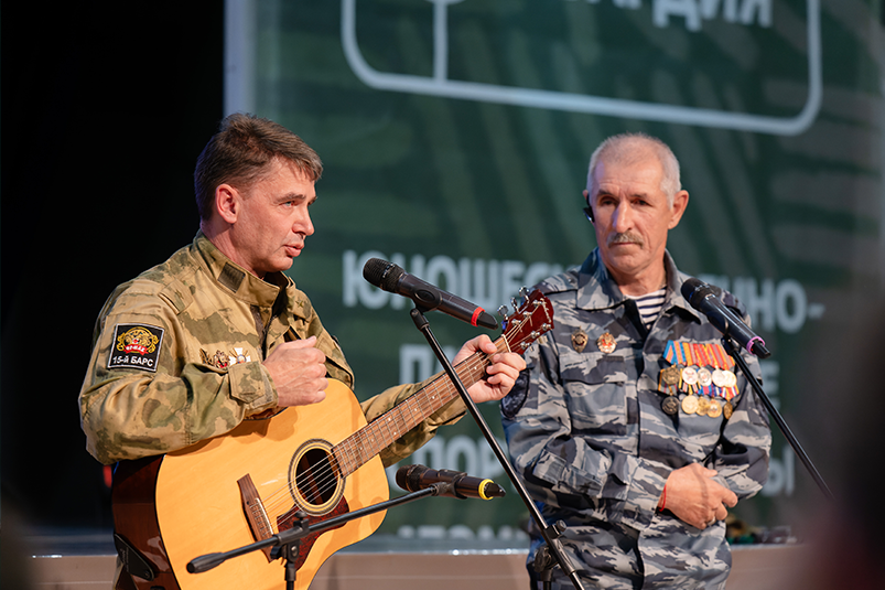 Завершился фестиваль там, где и стартовал — в ДК «Новоуральский». Здесь ребята имели возможность пообщаться с реальными героями — участниками СВО — и принять участие в плетении маскировочных сетей.