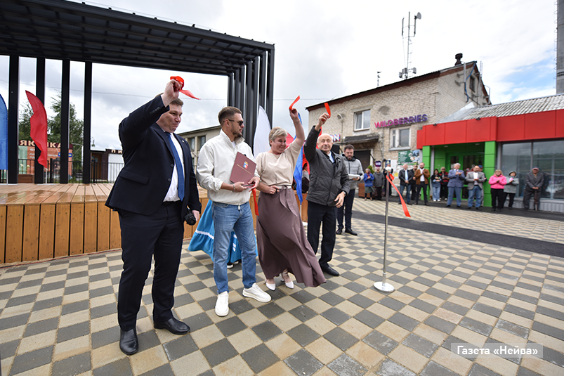 29 августа торжественно перерезали красную ленточку глава округа Вячеслав Тюменцев, заместитель председателя Думы НГО Александр Волков, начальник отдела сельских населённых пунктов Светлана Дыкова и представитель ИП Гладких.