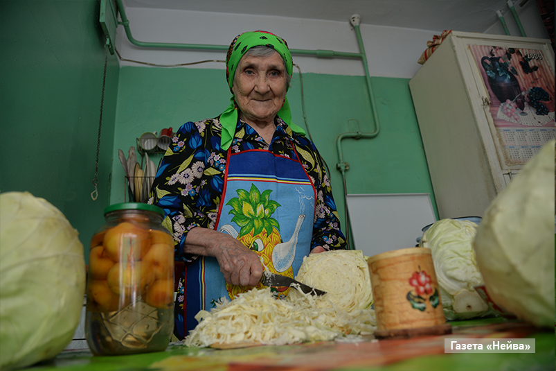 Наблюдая за этим процессом, мы то прислушивались к аппетитному скрипению прочных листьев, то отвлекали хозяйку своими вопросами. К бабе Маше мы пришли с той же целью, что и многие её соседи: выведать рецепт полезной заготовки на зиму. Говорят, что никто так потрясающе не квасит капусту, как жительница села Тарасково Мария Ивановна Бортникова.