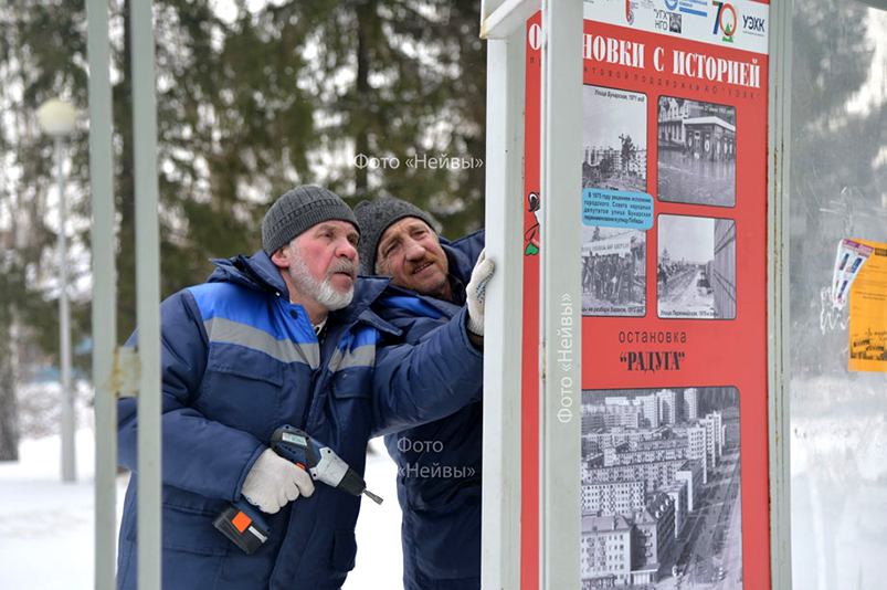 17 марта — юбилейный день рождения Новоуральска. Сегодня, 15 марта, за два дня до юбилея, сотрудники историко-краеведческого музея разместили на остановках исторические баннеры, тематически соответствующие месту расположения.