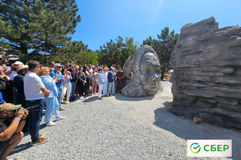 13 августа на плато Ай-Петри в Крыму открылся уникальный арт-объект «Шёпот гор». На открытии скульптурной композиции присутствовали Президент, Председатель правления Сбербанка Герман Греф, вице-президент Сбербанка — председатель Уральского банка Петр Колтыпин и губернатор Челябинской области Алексей Текслер.