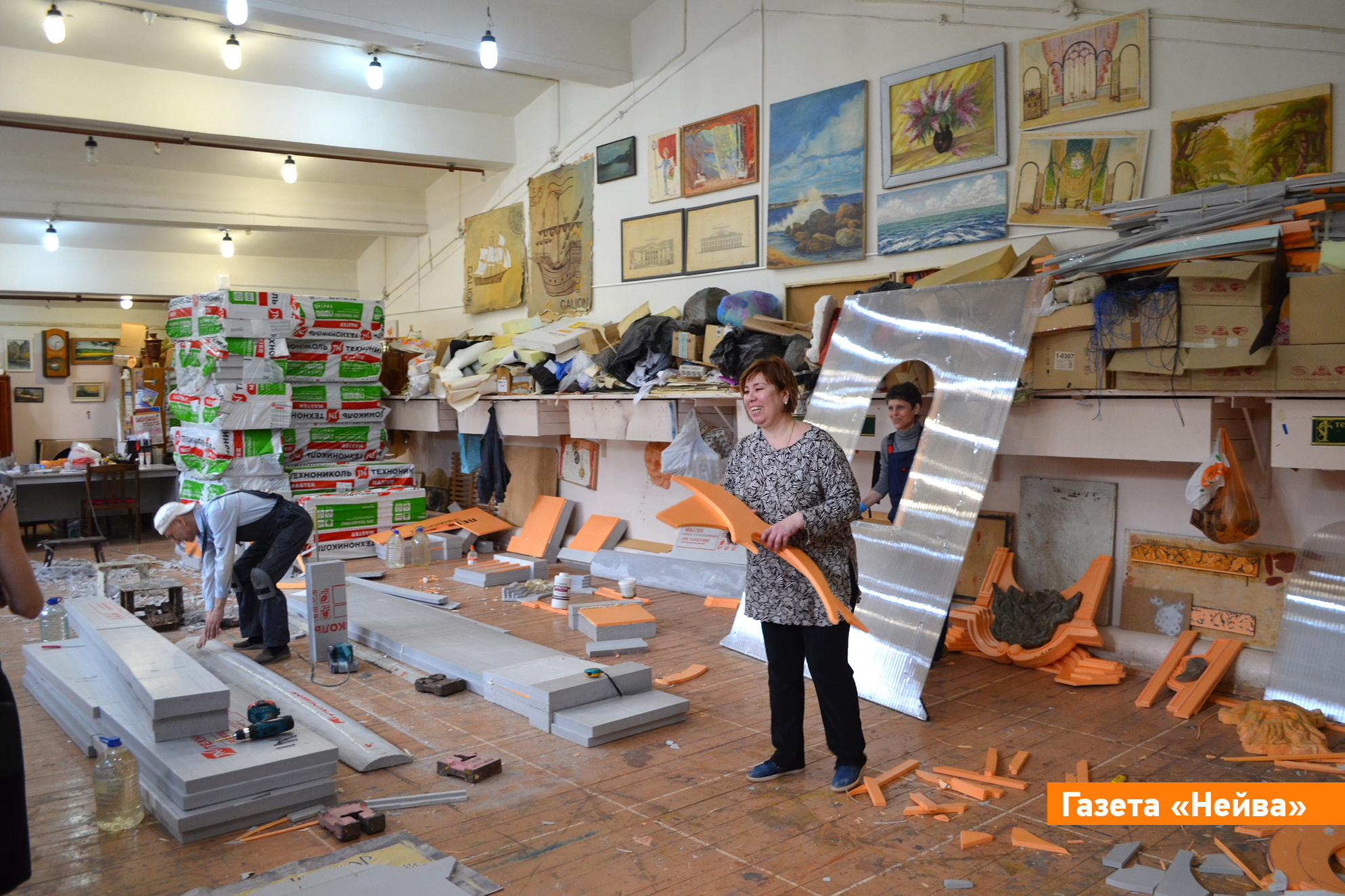 В технических цехах кипит работа: более сотни костюмов из ватина, габардина и льна предстоит создать костюмерам, в художественной мастерской рождаются декорации. Здесь активно используют современные материалы — пеноплекс, поликарбонат.