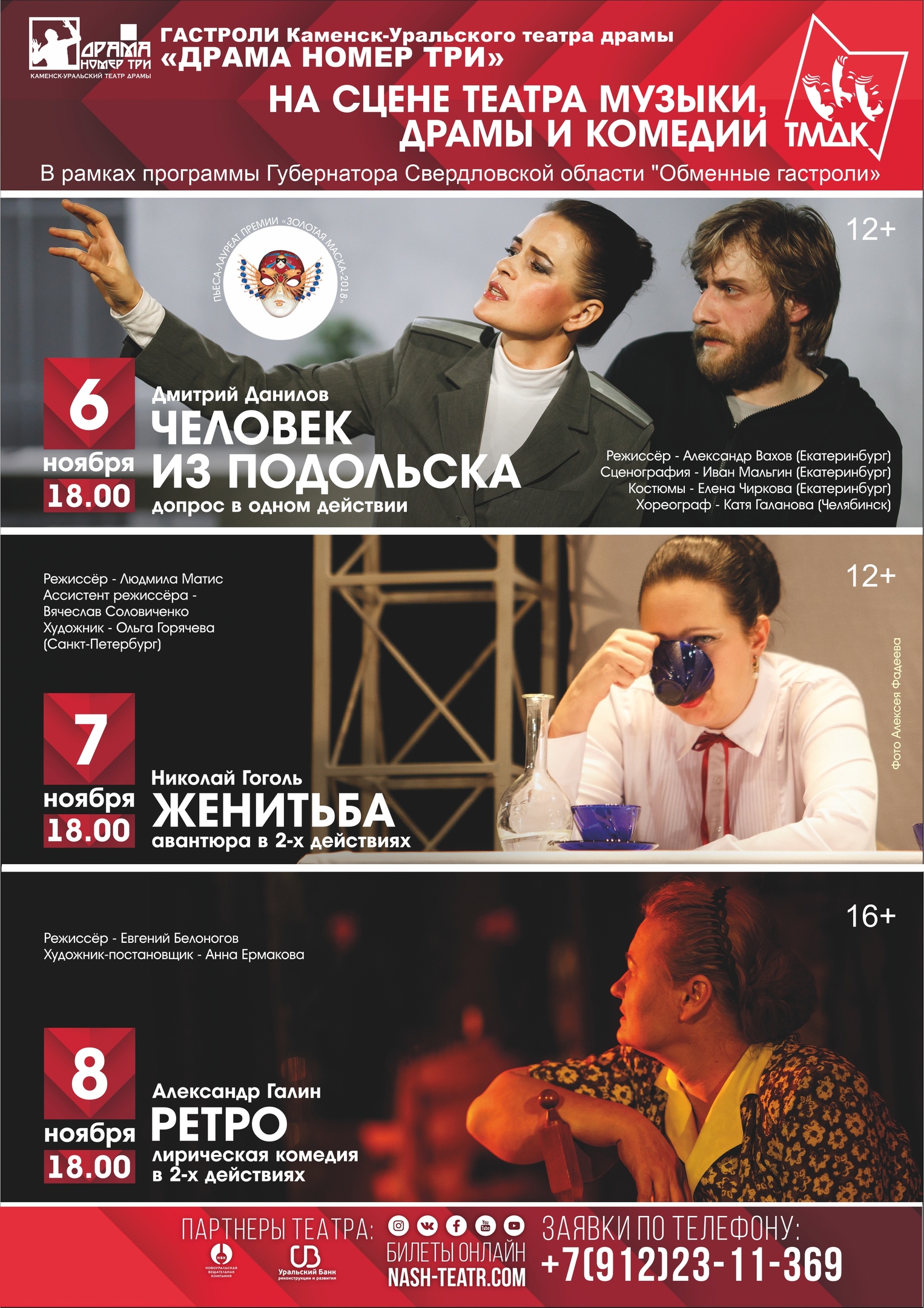 С 6 по 8 ноября в Театре музыки, драмы и комедии пройдут гастроли театра из Каменск-Уральского «Драма номер три».