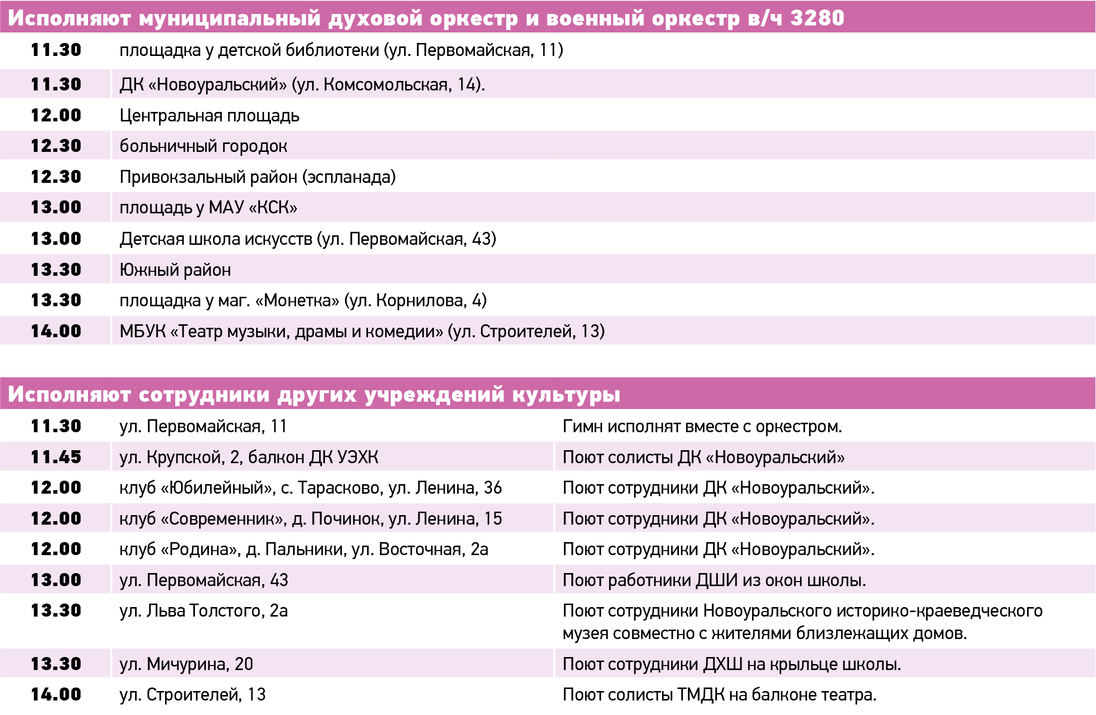 А также на площадках у ДК «Новоуральский» и Театра музыки, драмы и комедии. Здесь музыкантов поддержат солисты этих учреждений культуры.