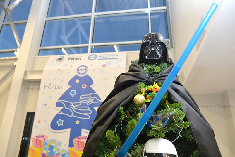 Например, одна из новогодних красавиц сделана из 250 коробок из-под яиц. Другая — хайтек из элементарной стремянки и набора зеркальных стеклянных шаров. И уж вовсе нечто фантастическое — ёлка по мотивам саги «Звёздные войны», увешанная бластерами, джойстиками и джедайскими мечами, вершину которой венчает сам Дарт Вейдер!
