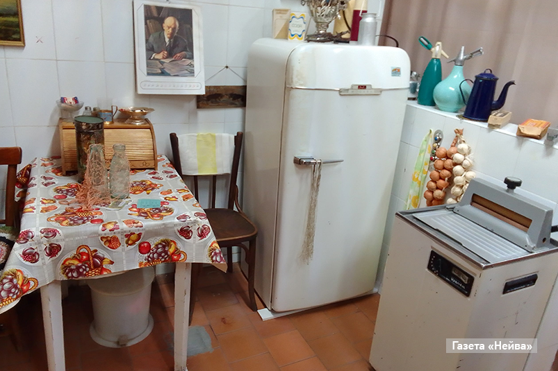 В помещении, очень похожем на обыкновенную «двушку» в «хрущевке», разместились диваны, шкафы, серванты. В них — настоящее сокровище для советских детей: солдатики, машинки, пистолеты… А рядом — учебники по математике, пластинки Высоцкого, стиральная машина.