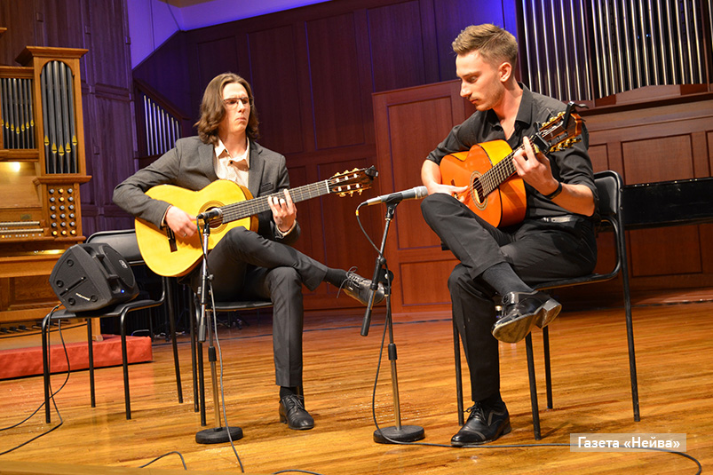 Интересную программу в стиле фламенко представил дуэт Константина Ушакова и Василия Комарова — ученики еще одного выдающегося педагога нашего города Евгения Булатова.
