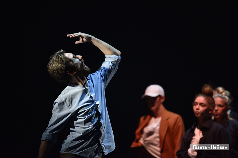 Современная хореография — изломанные, часто повторяющиеся движения (похожее мы видели на прошлой лаборатории, в эскизе «В ожидании Годо»).