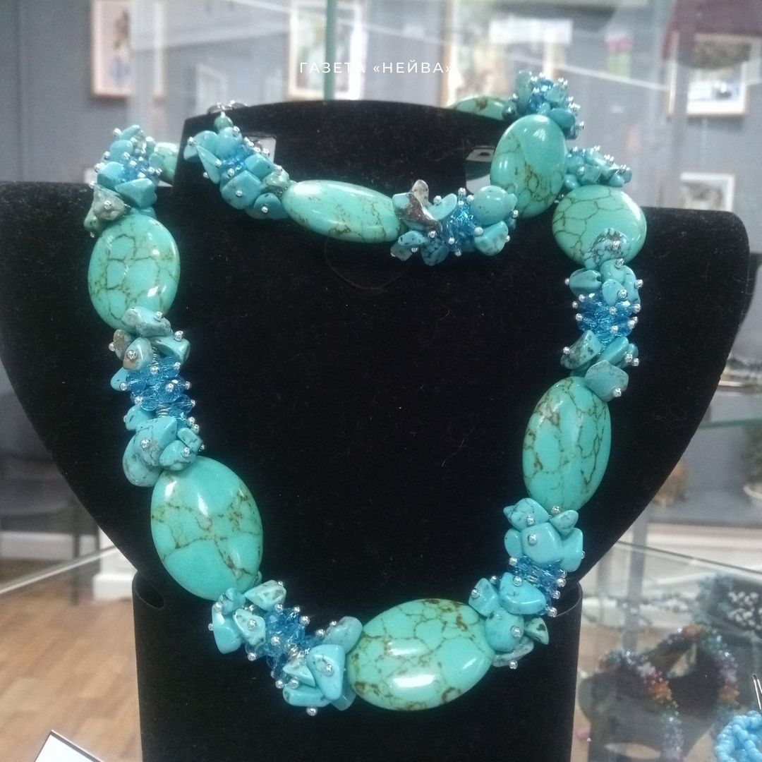 У каждого мастера — своя излюбленная техника. Внимание женских глаз приковывают украшения из камней и бисера Людмилы Даниловой. Гарнитуры, колье, браслеты из аметиста, агата, голубого кварца, янтаря отличаются изяществом и шармом.