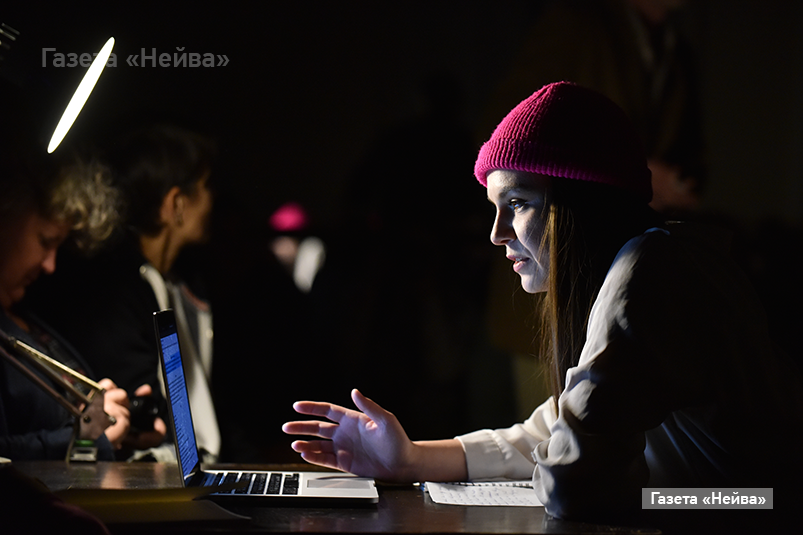 — Мы хотели немного пошалить — это же лаборатория, — говорит Максим. — Вот и взяли в союзники пространство театра, интерьер которого очень подошел к атмосфере спектакля.