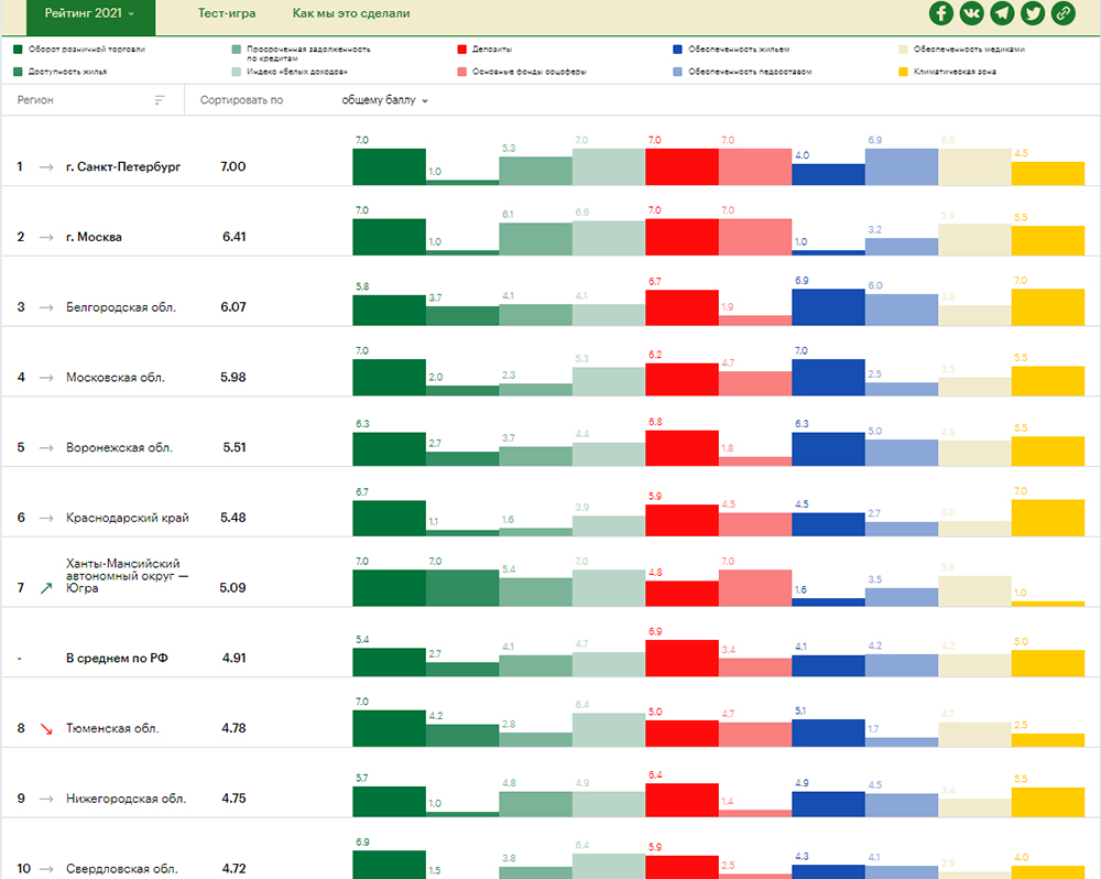 Полный рейтинг можно посмотреть по ссылке: https://www.rbc.ru/economics/26/04/2021/6078136e9a7947d0e9e1b1fb