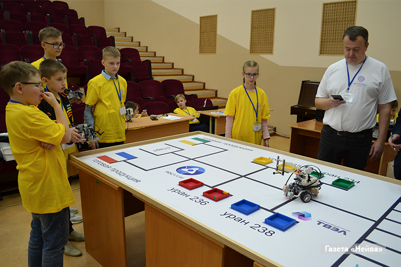 Робототехника — самая, пожалуй, зрелищная компетенция. Мальчишкам только дай повозиться с машинками! Но на сей раз роботы по полигону гоняют не просто так, а с очень серьезной миссией: нужно заехать на площадку и забрать контейнер с ураном, отвезти его в центр обогащения, а затем доставить на склад.